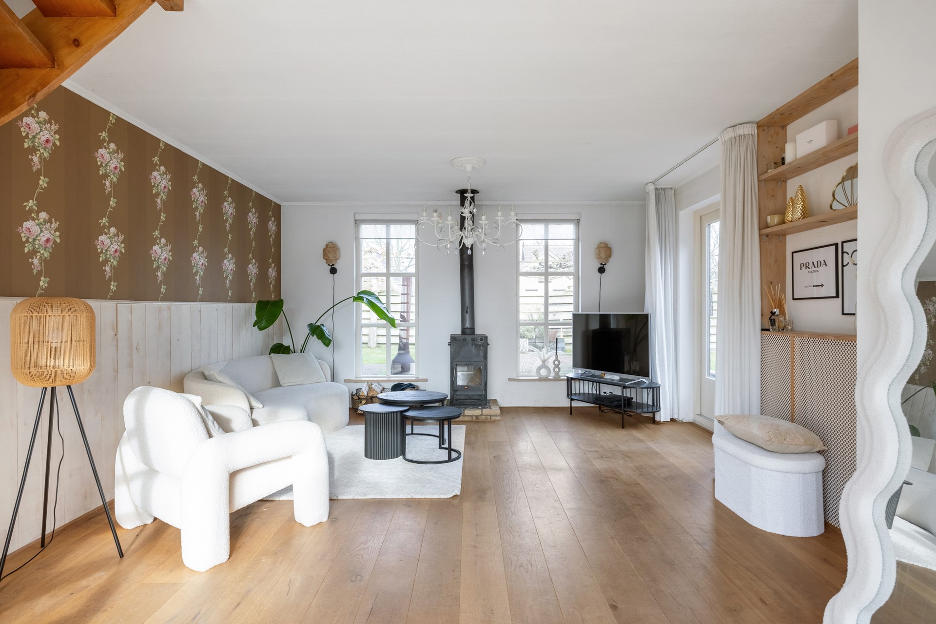 De woning is door de jaren heen goed onderhouden en ademt een warme, landelijke sfeer. Hier woont u rustig en vrij, met alle comfort van nu. Vloerverwarming in de woonkamer en keuken. De gashaard met schouw zorgt voor extra sfeer en warmte in de woonkamer. De halfopen eetkeuken is voorzien van inrichting in landelijke stijl. Het robuuste fornuis is een van de eyecatchers samen met het stijlvolle aanrecht en kranen. Door het gebruik van authentieke materialen biedt deze woning een karakteristieke sfeervolle uitstraling.