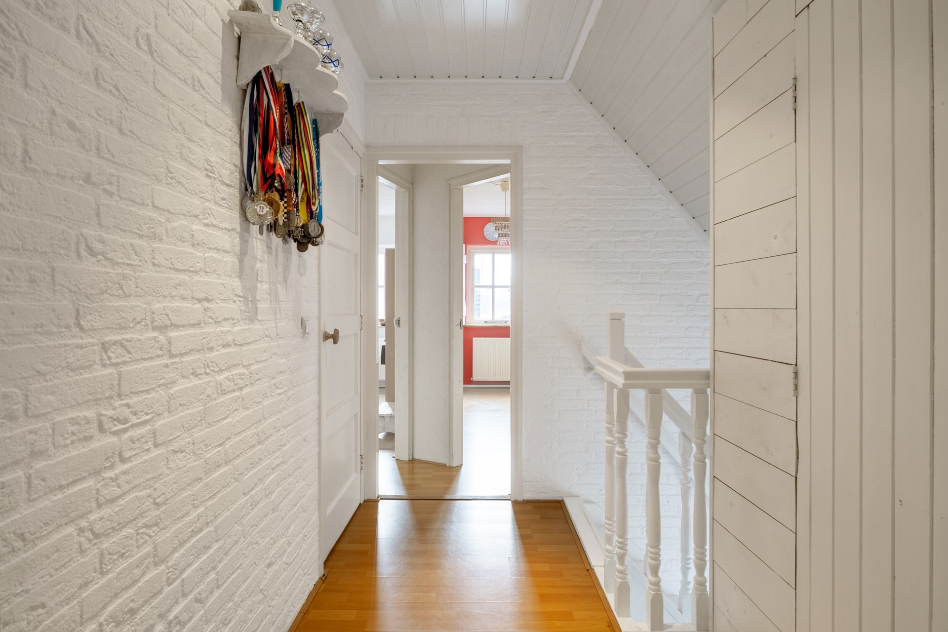 Op de verdieping van de woning bevinden zich nog eens drie slaapkamers en de badkamer. Daarmee biedt de woning volop ruimte voor een gezin, hobby’s en thuiswerken.