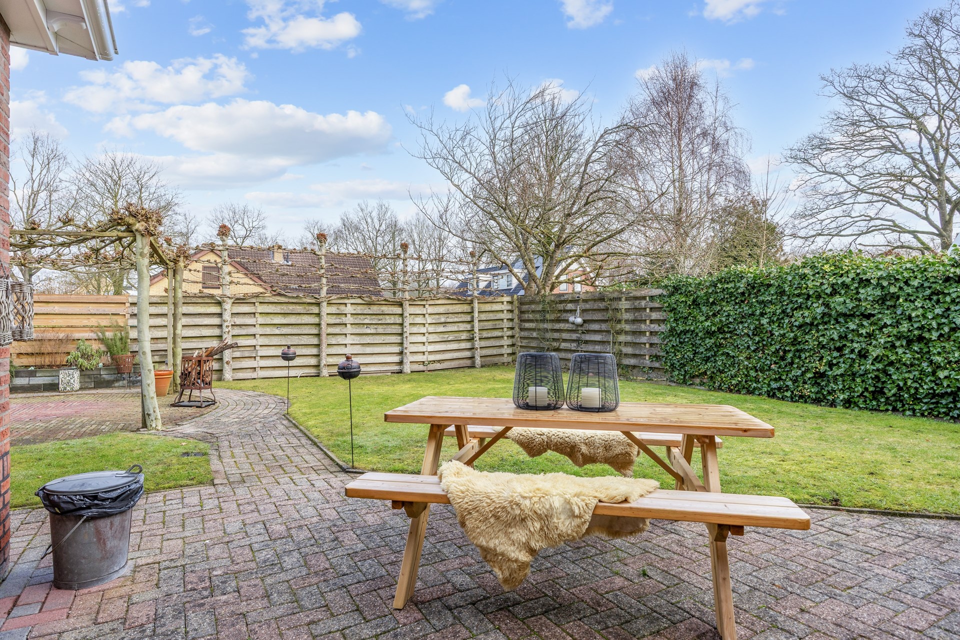 De besloten tuin biedt veel privacy en is netjes aangelegd. De veranda met buitenkeuken maakt het buitenleven extra aangenaam. De aangebouwde houten berging zorgt voor voldoende opberg gemak.