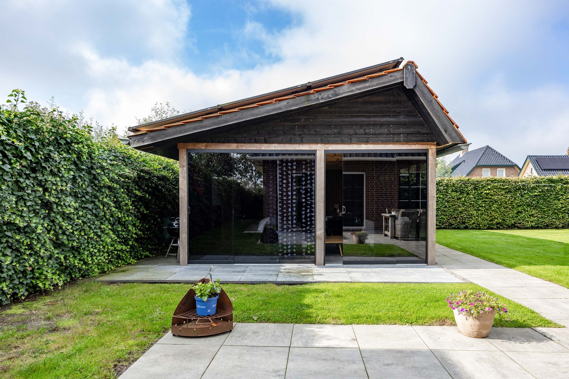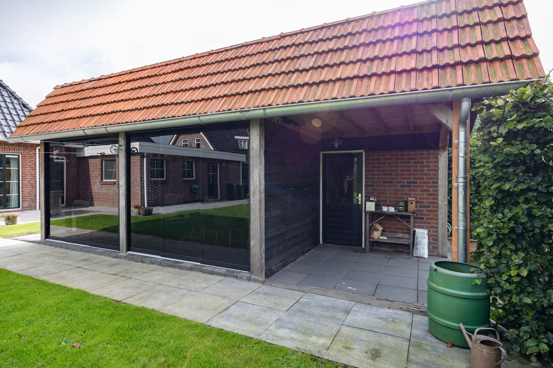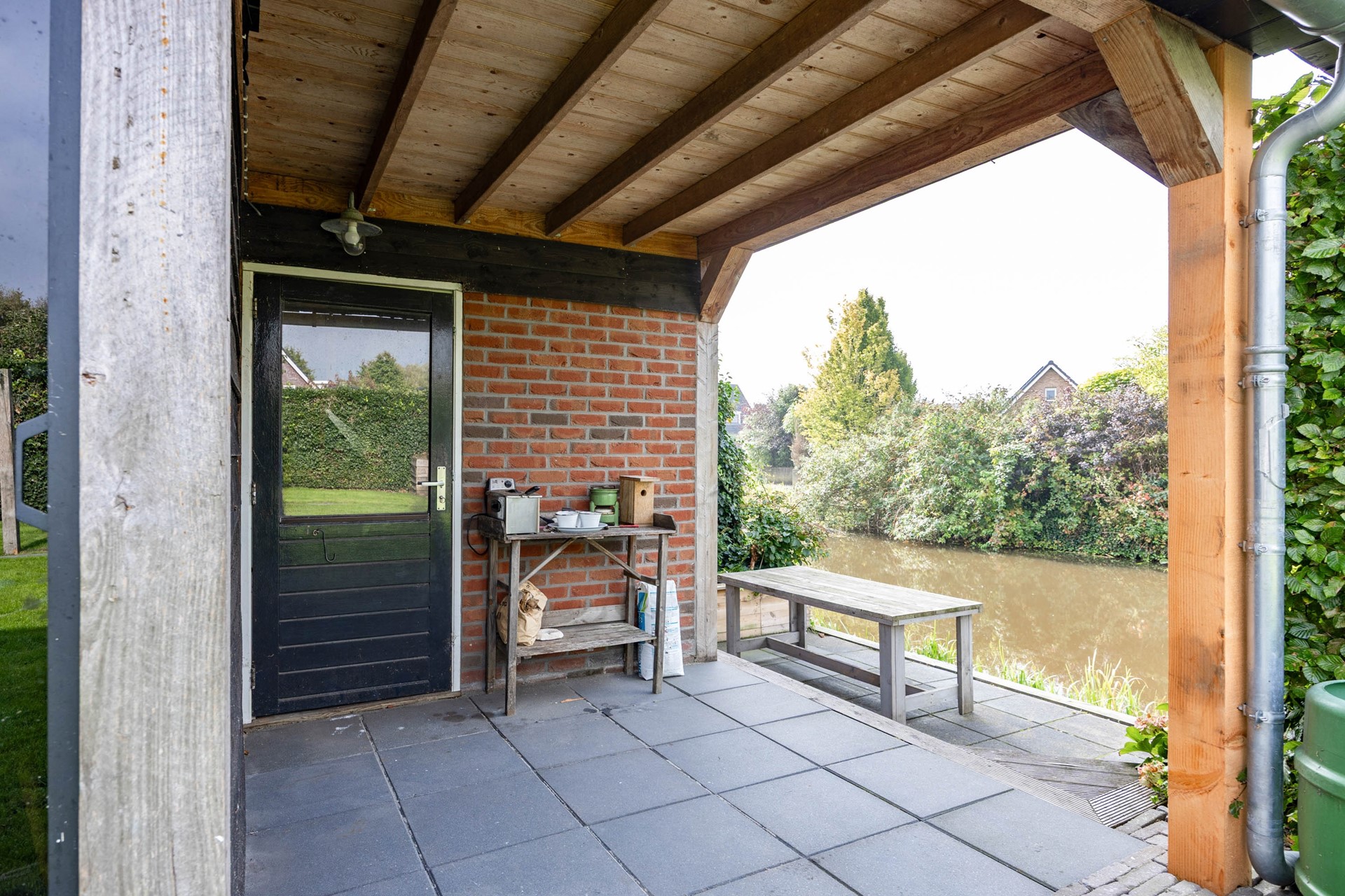 De tuin is een absoluut verlengstuk van het huis. De achtertuin is diep, breed, goed onderhouden en biedt volledige privacy. De tuin is voorzien van een combinatie van bestrating en gras en grenst aan de achterkant aan het water, wat een gevoel van rust en vrijheid geeft. Via de zijkant van de woning is de achtertuin vanuit voor ook direct bereikbaar. In de tuin staat een royaal en multifunctioneel tuinhuis. Deze is voorzien van uitschuifbare glazen puien, verwarming en koeling en een gezellige bar. Perfect voor zomerse avonden of juist knusse winterborrels. Aan de achterkant van het tuinhuis bevindt zicht een aparte berging, handig voor het opbergen van uw tuinmeubilair en gereedschap.