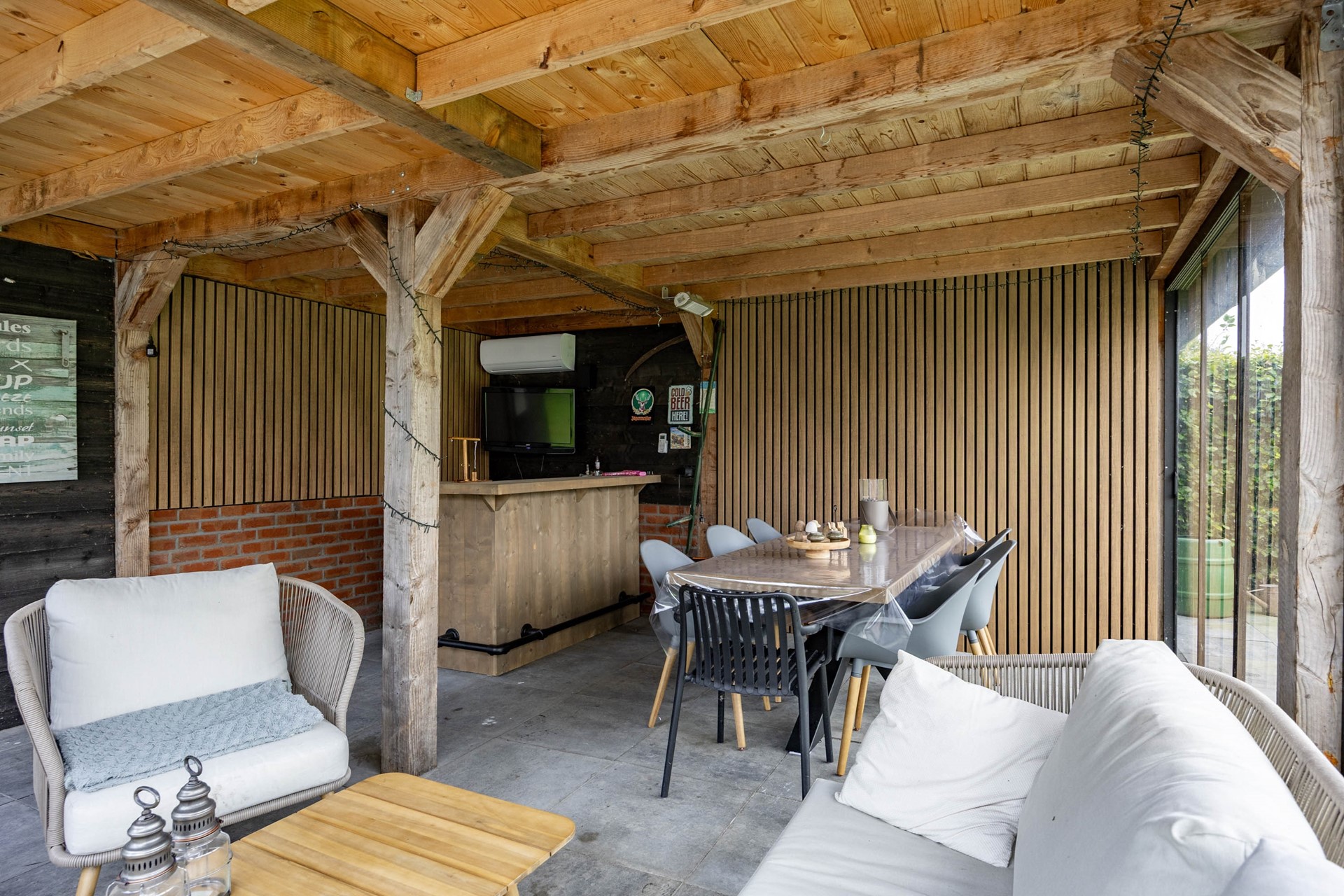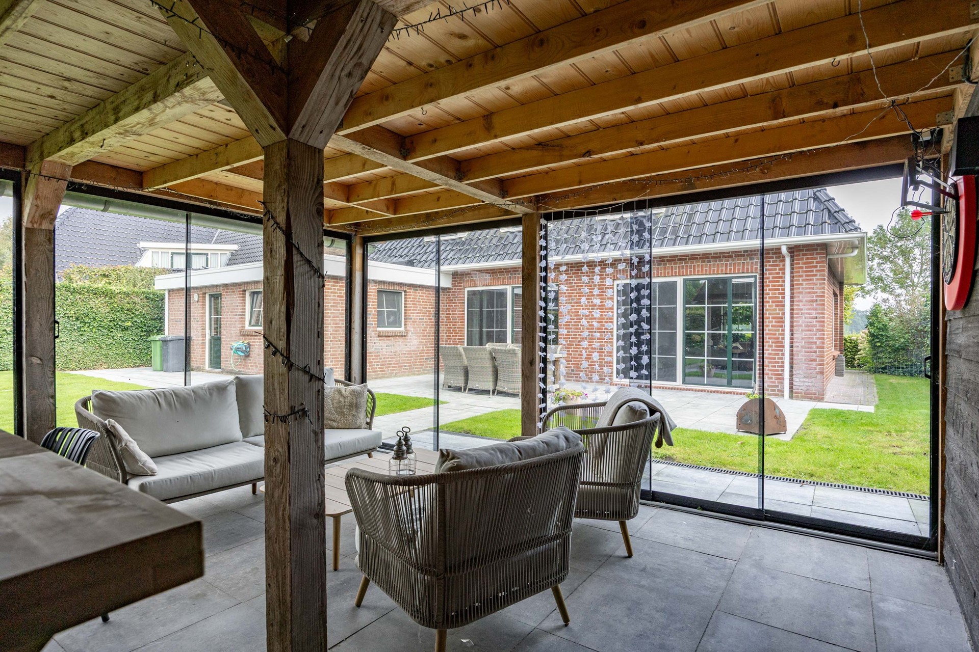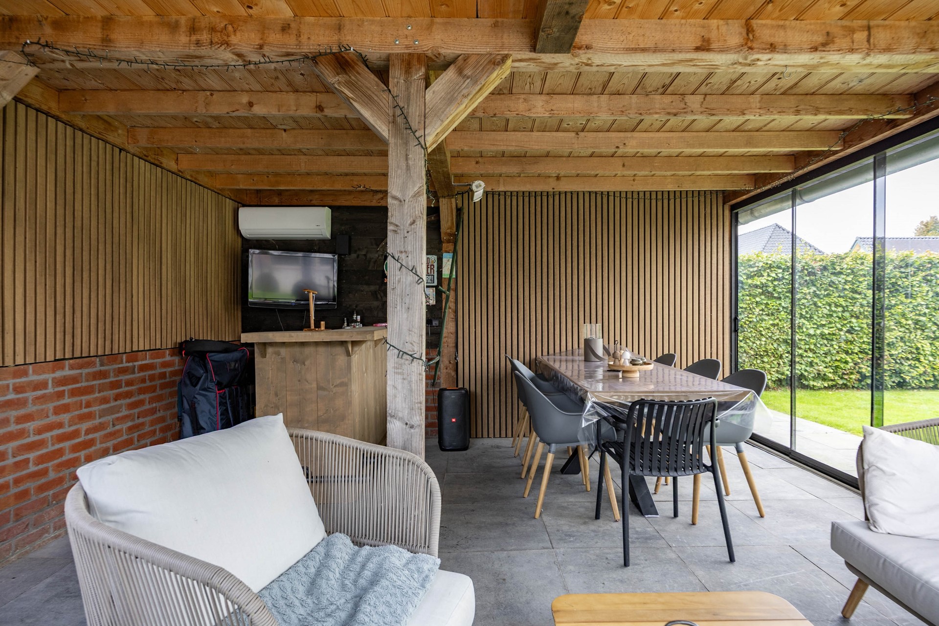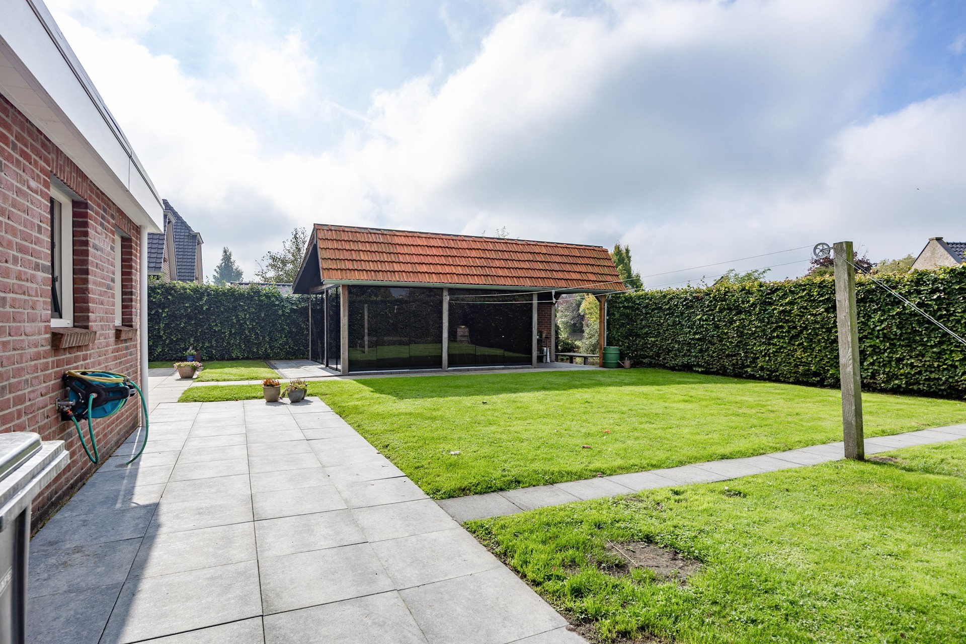De tuin is een absoluut verlengstuk van het huis. De achtertuin is diep, breed, goed onderhouden en biedt volledige privacy. De tuin is voorzien van een combinatie van bestrating en gras en grenst aan de achterkant aan het water, wat een gevoel van rust en vrijheid geeft. Via de zijkant van de woning is de achtertuin vanuit voor ook direct bereikbaar. In de tuin staat een royaal en multifunctioneel tuinhuis. Deze is voorzien van uitschuifbare glazen puien, verwarming en koeling en een gezellige bar. Perfect voor zomerse avonden of juist knusse winterborrels. Aan de achterkant van het tuinhuis bevindt zicht een aparte berging, handig voor het opbergen van uw tuinmeubilair en gereedschap.