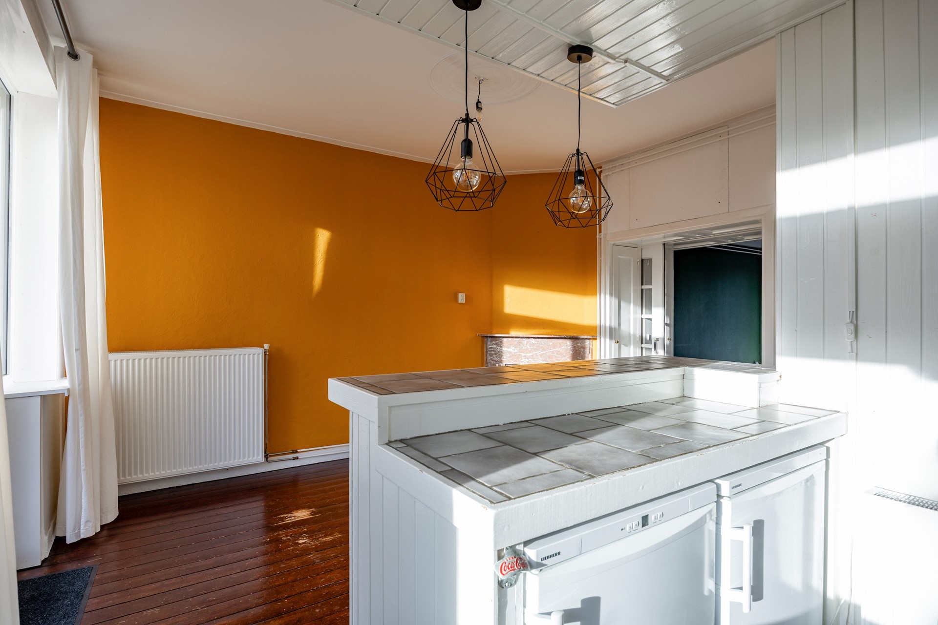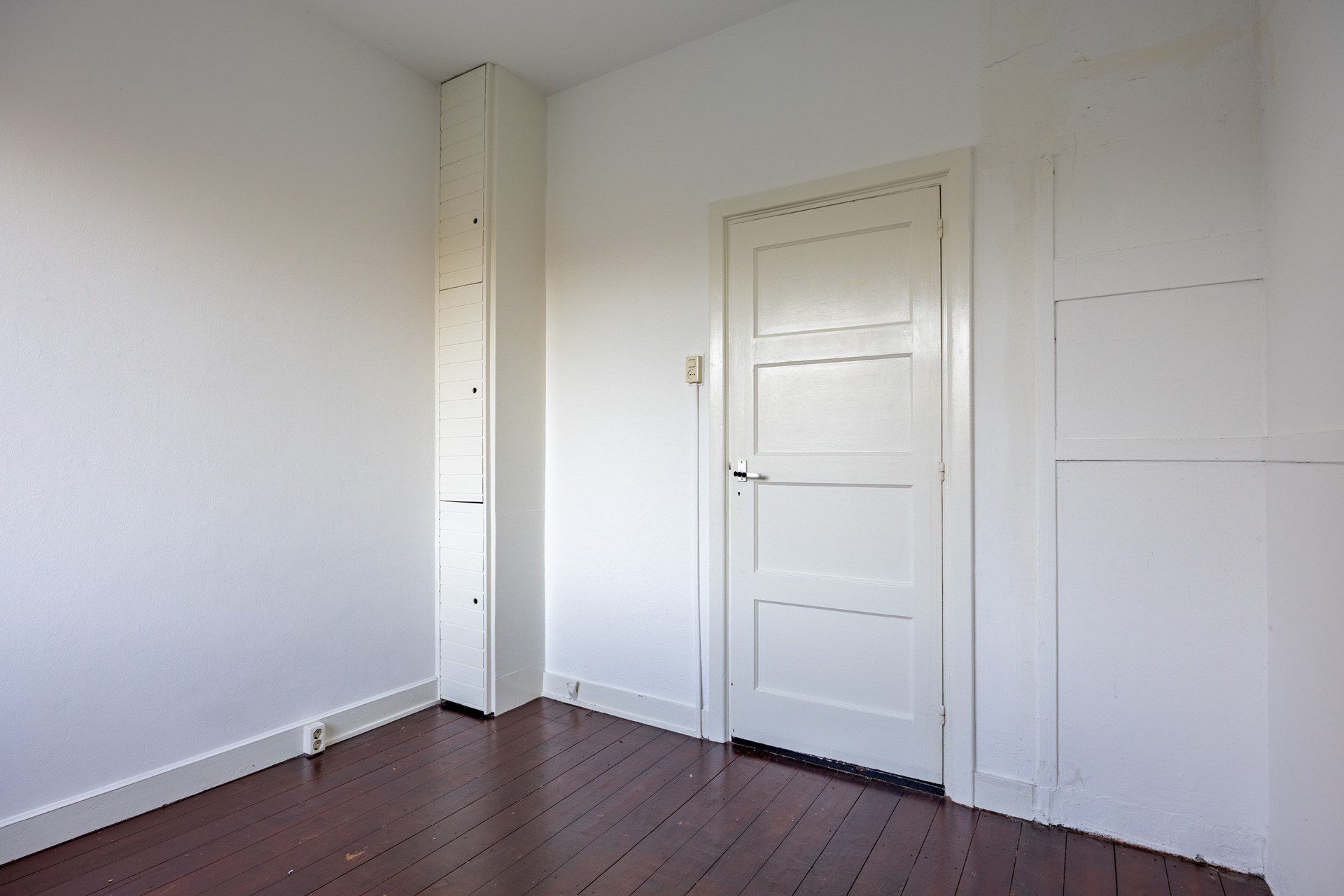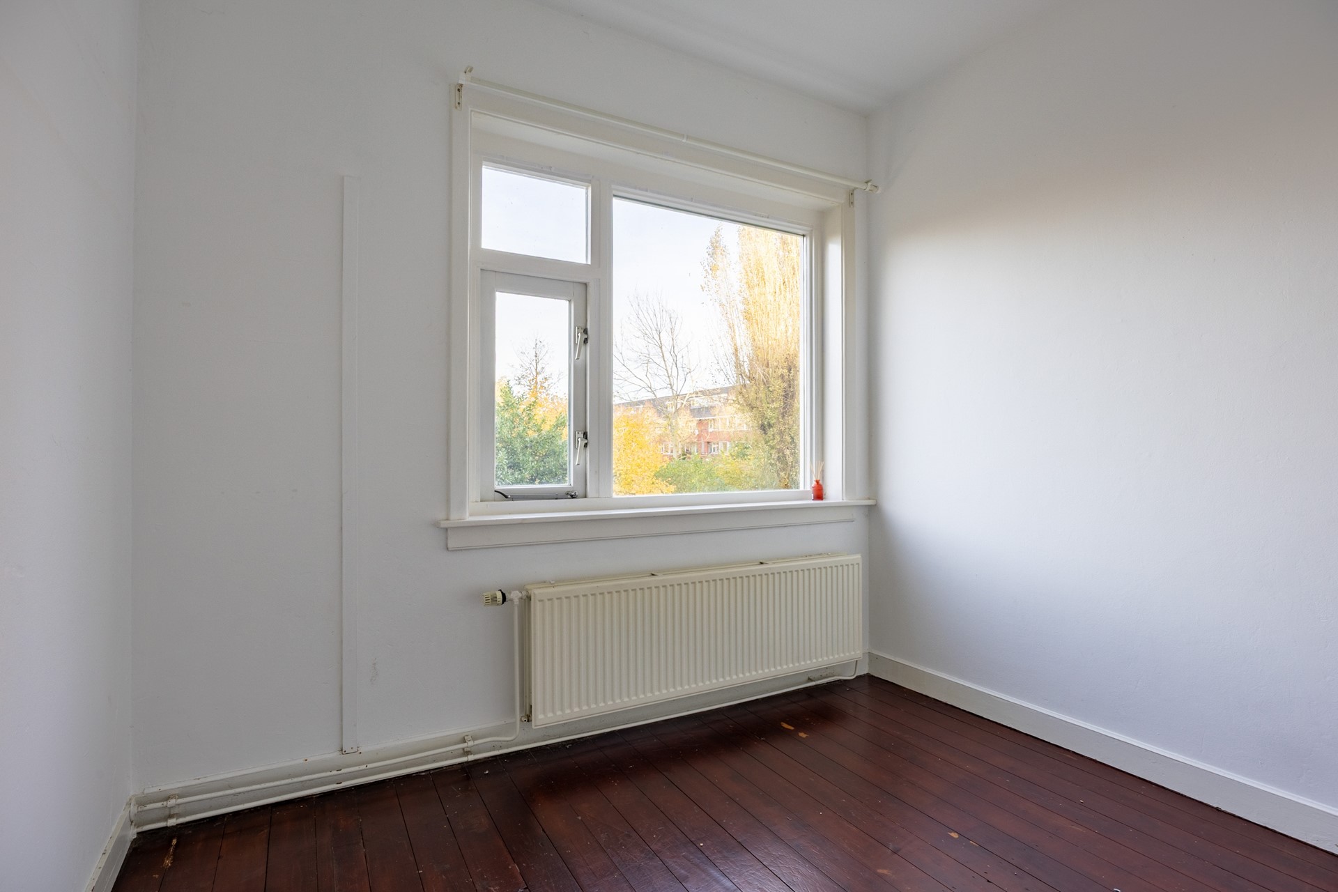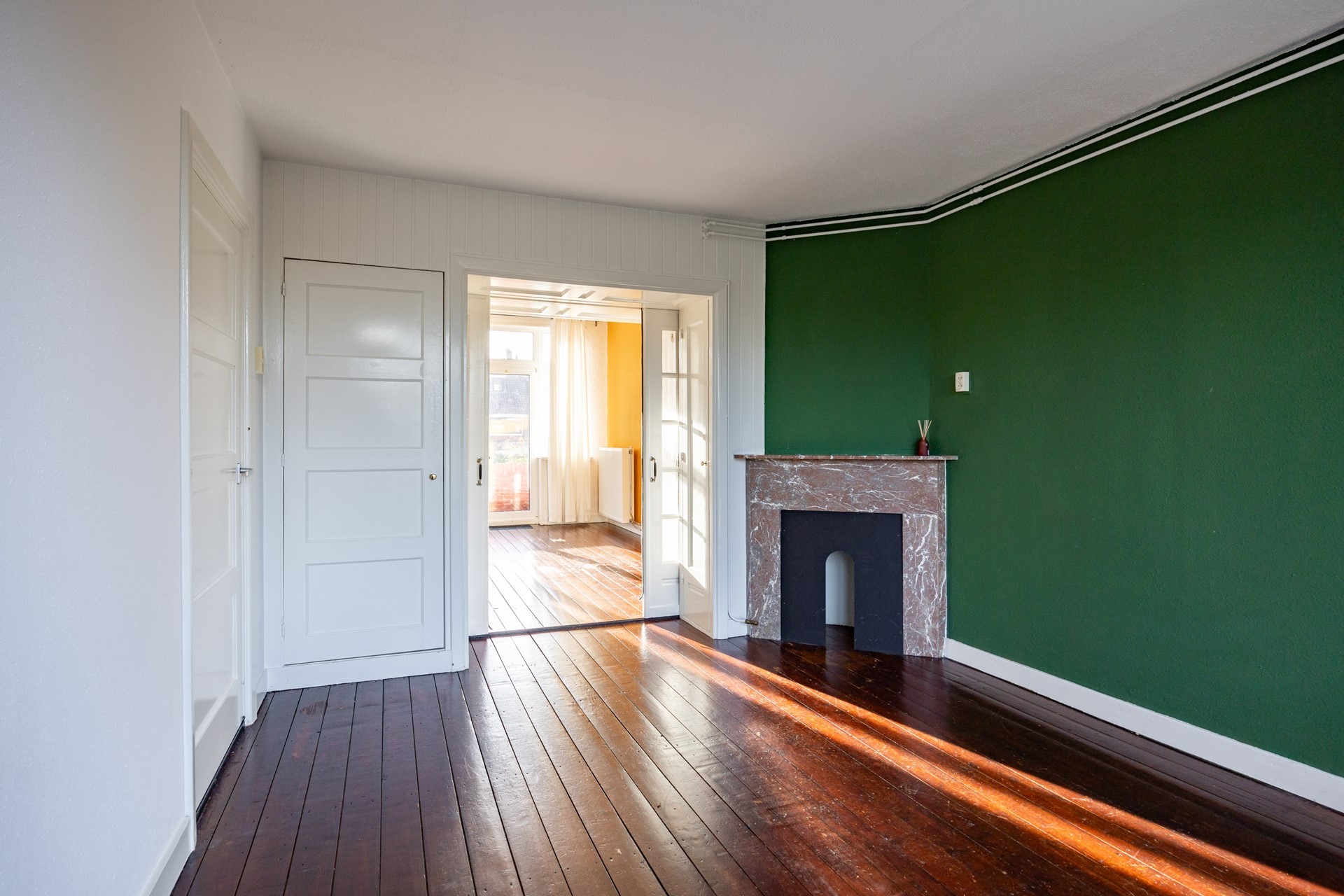De slaapkamer ligt aan de straatzijde van de woning. De woonkamer en achterkamer zijn ruim bemeten en afsluitbaar via de originele kamer-en suite deuren. De authentieke schouwen zijn nog aanwezig. Dit zorgt voor extra sfeer in de ruimte samen met de houtenplanken vloeren.