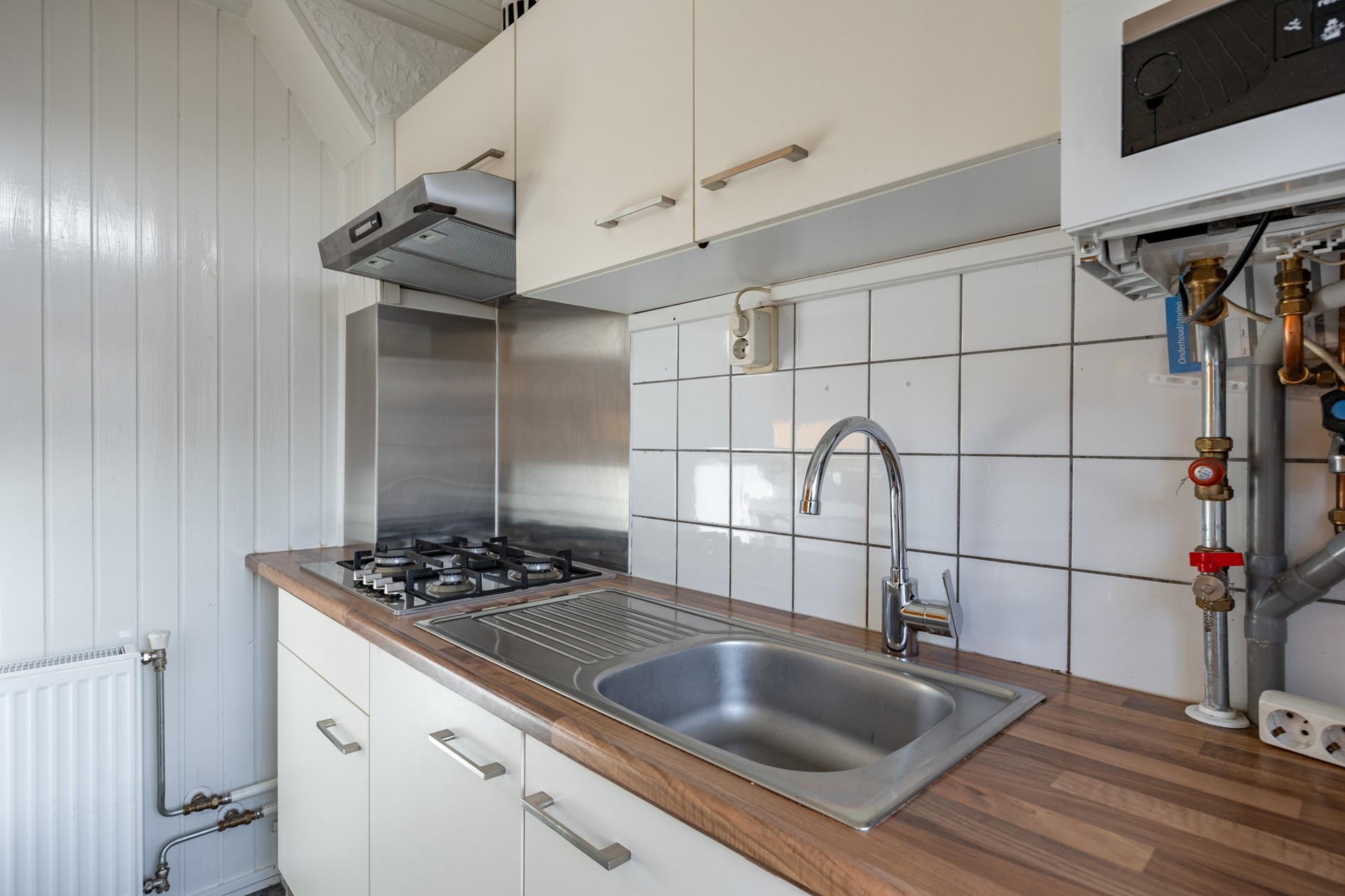 Een kunststof pui biedt via de achterkamer toegang tot het royale balkon. De keuken is ruim van opzet en voorzien van diverse apparatuur zoals een gasstel, koelkast en vriezer. De gezellige bar zorgt voor een afscheiding tussen het koken en het eten (of studeren).