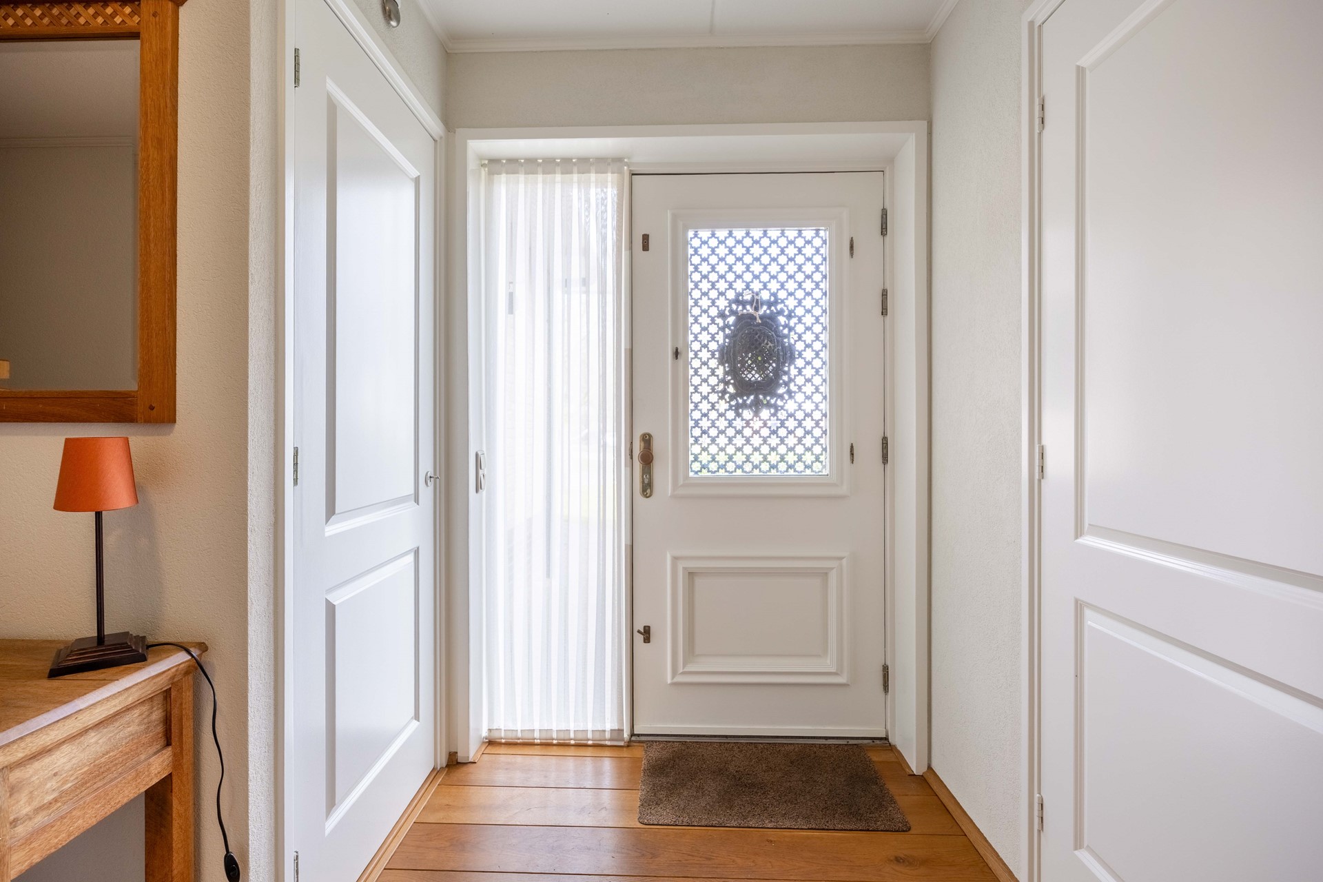 Via de stijlvolle voordeur komt u in de hal met toegang tot het toilet, de meterkast, de badkamer en een slaapkamer (ook ideaal als thuiswerkplek).