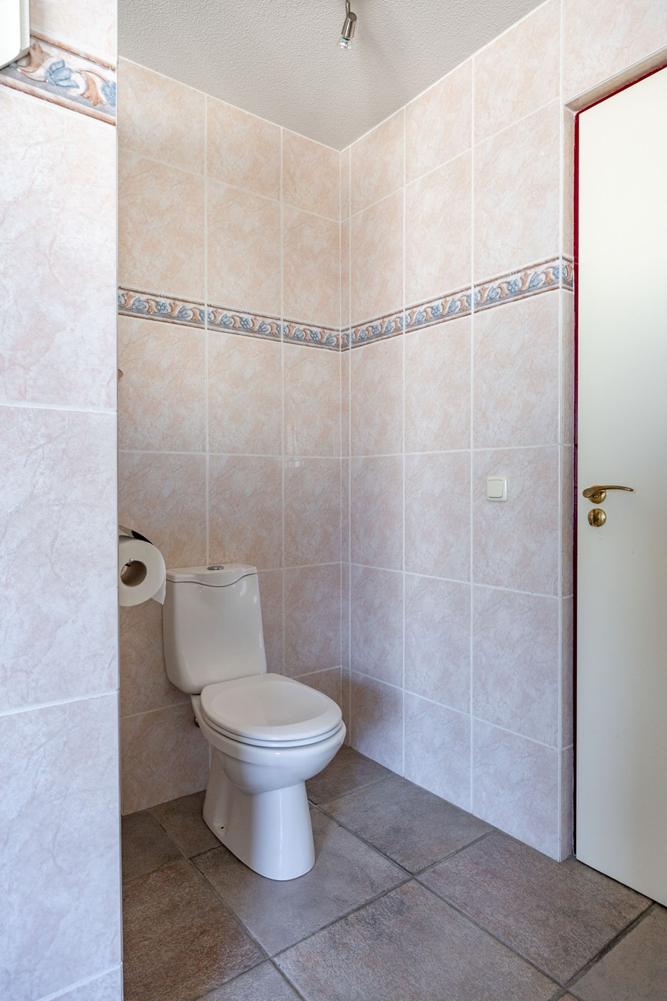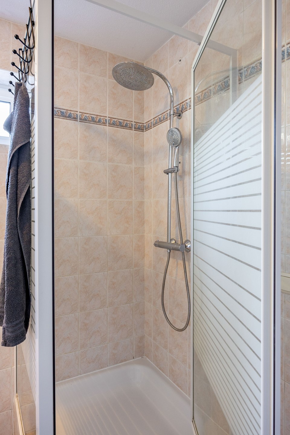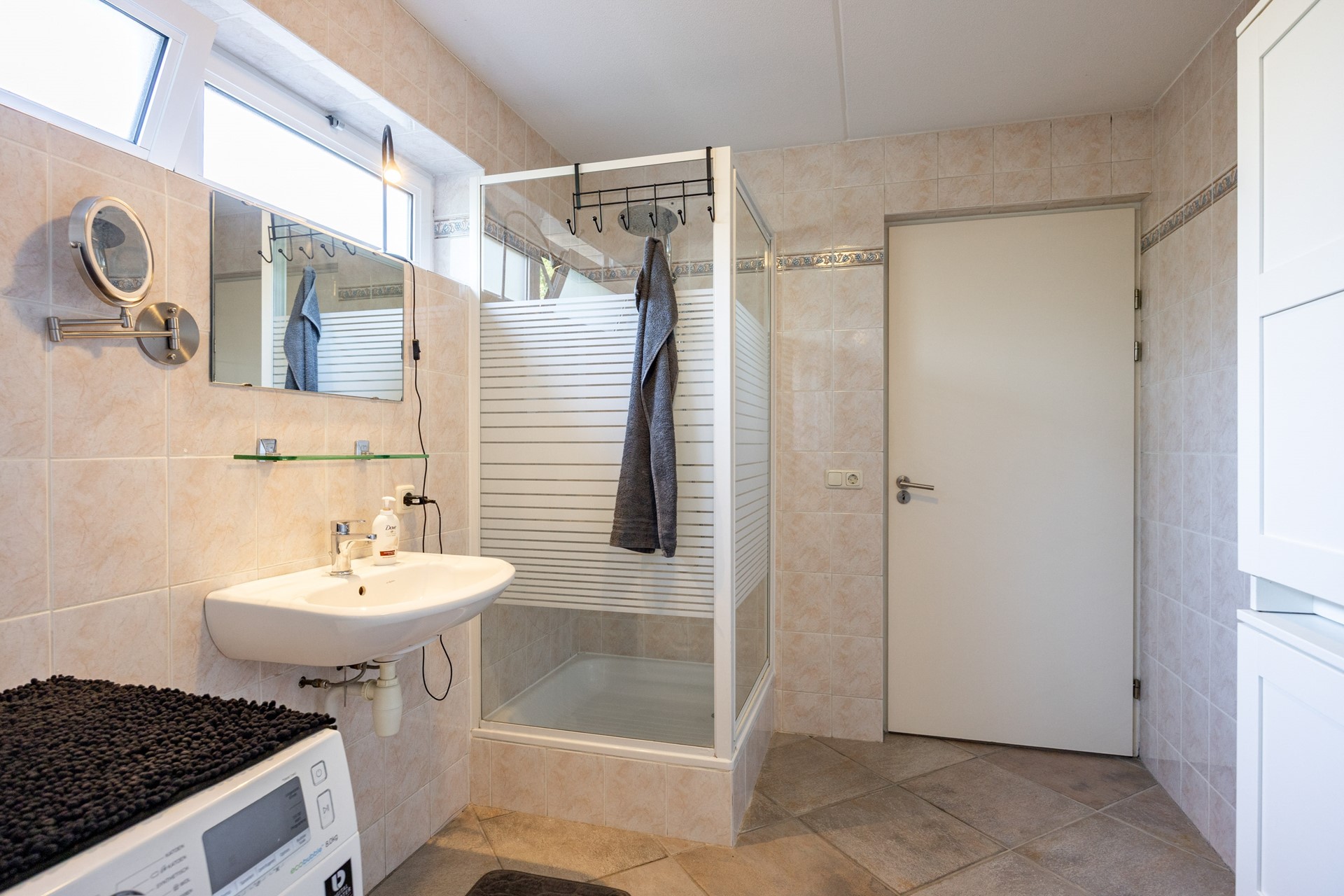 Op de begane grond bevinden zich een ruime slaapkamer en een badkamer, wat de woning zeer geschikt maakt voor levensloopbestendig wonen. De badkamer op de begane grond is voorzien van wastafel, douche en witgoedaansluiting.