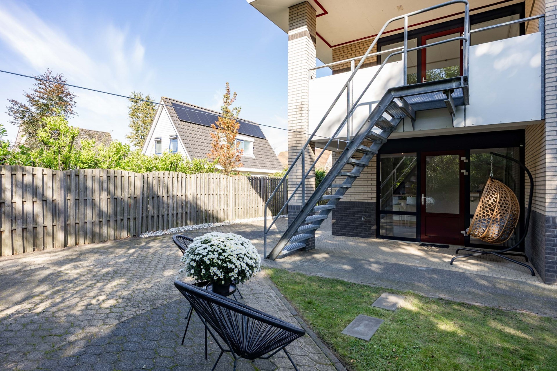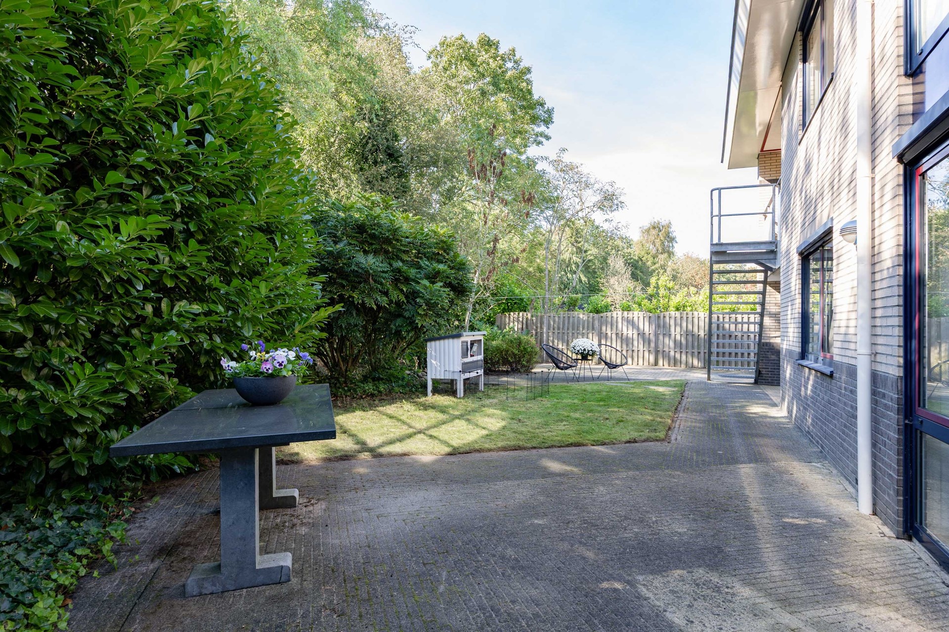 De tuin is rondom de woning gelegen en grotendeels bestraat, wat het onderhoud eenvoudig maakt. Door geplaatste screens rondom de woning is er extra comfort en zonwering. De grote oprit biedt meer dan voldoende parkeergelegenheid op eigen terrein en draagt bij aan het royale totaalplaatje.