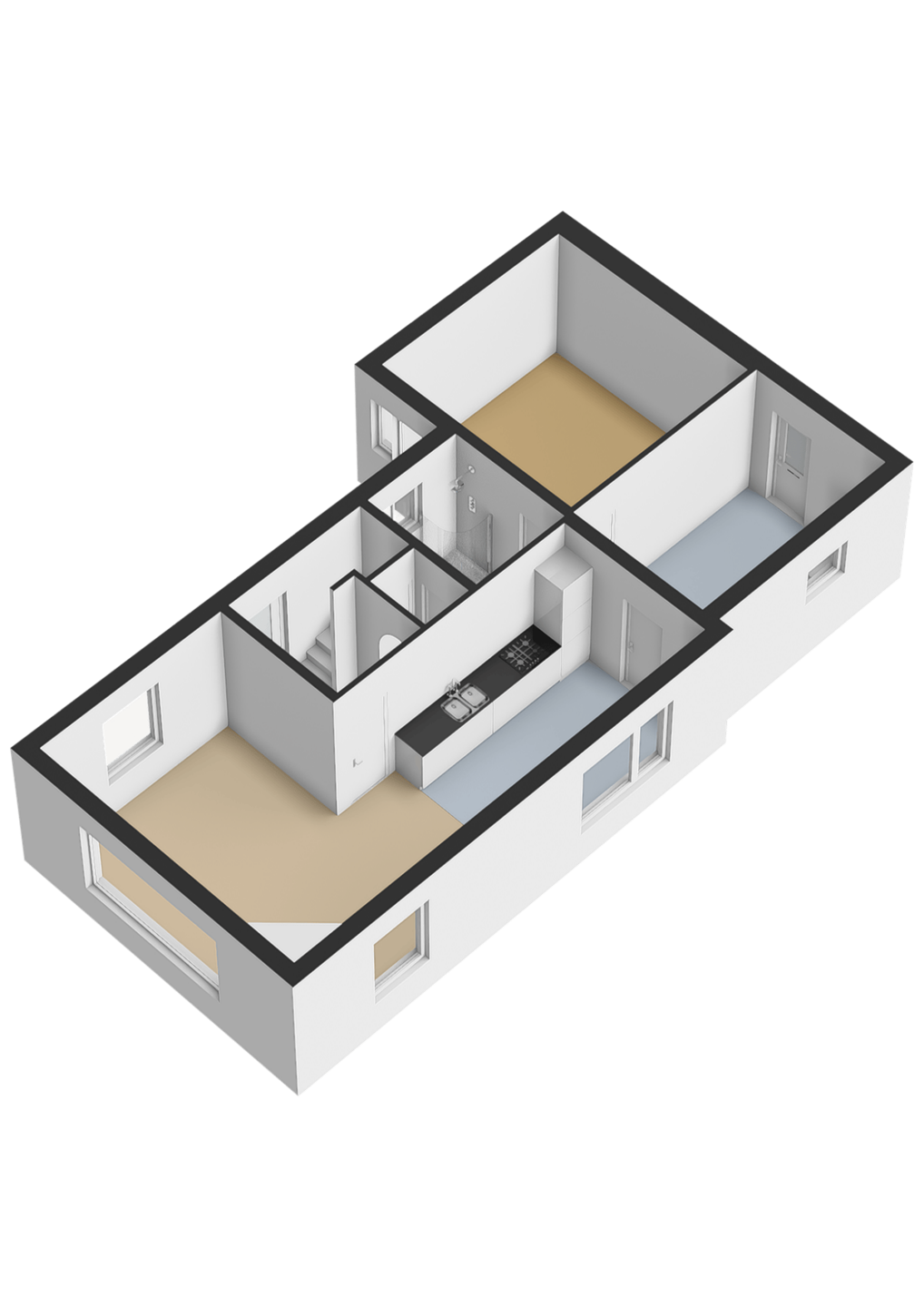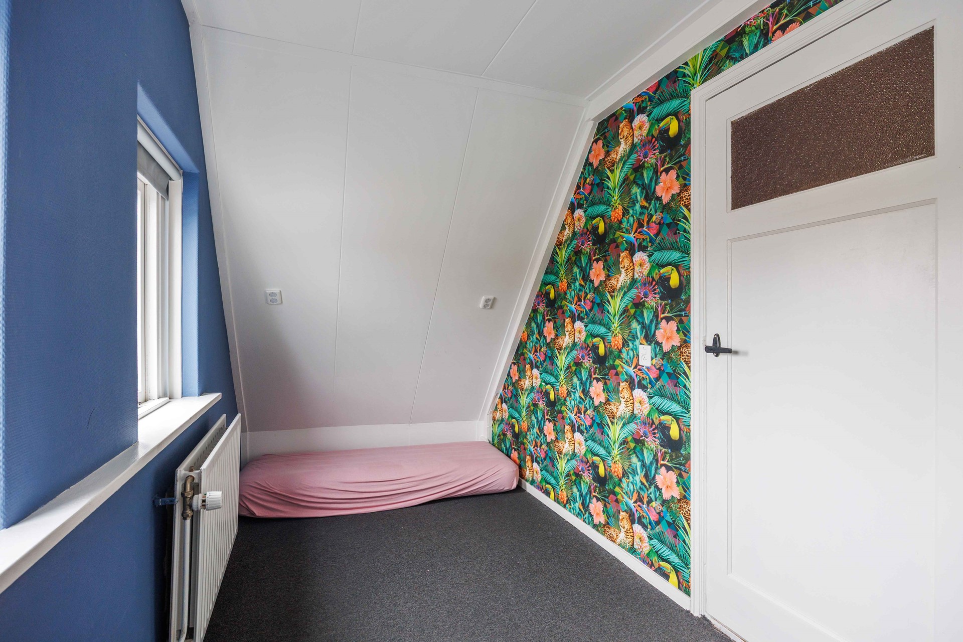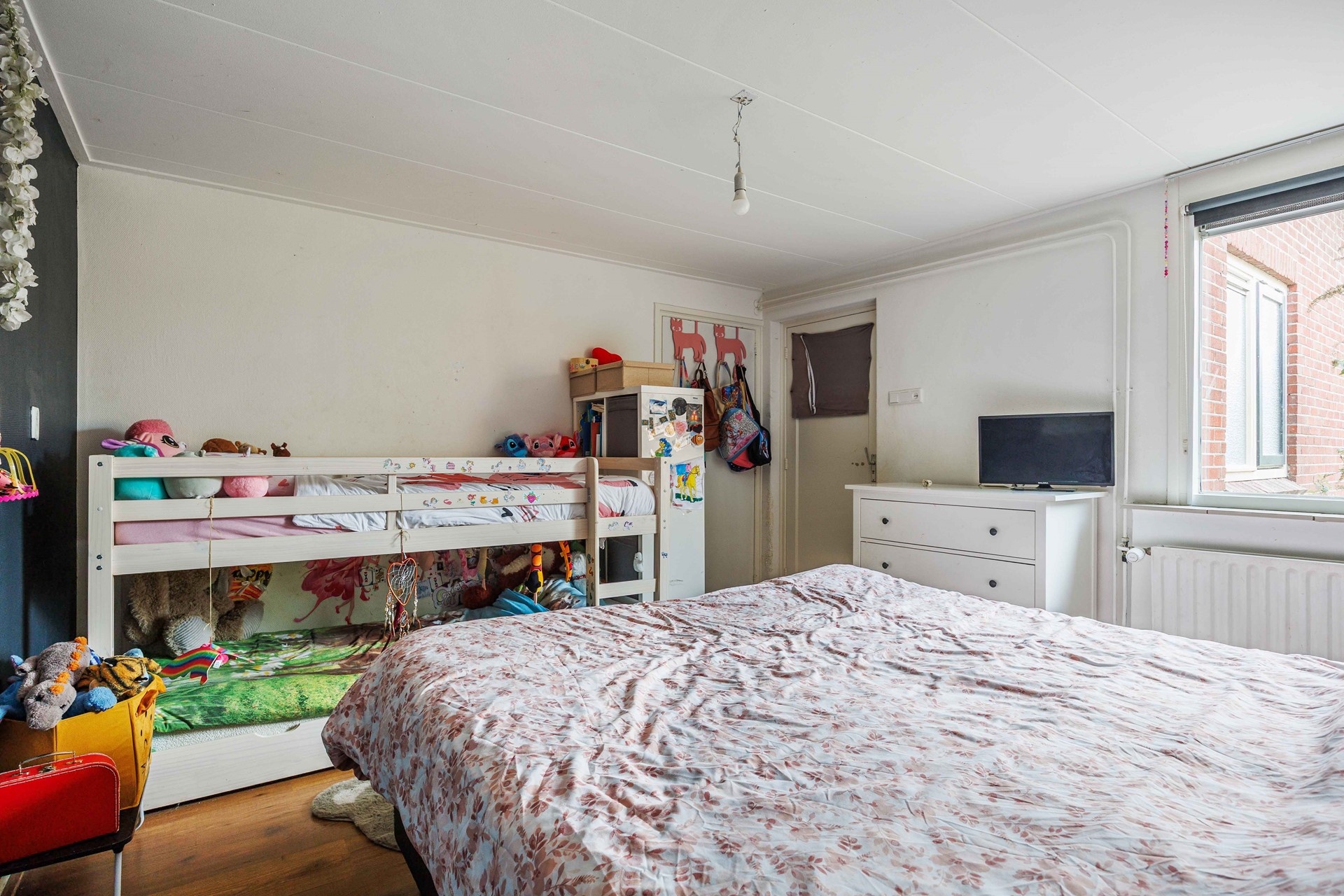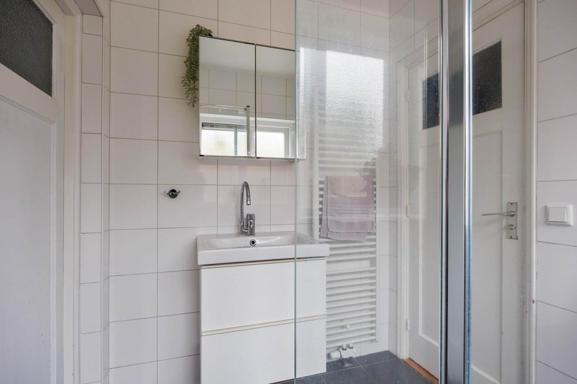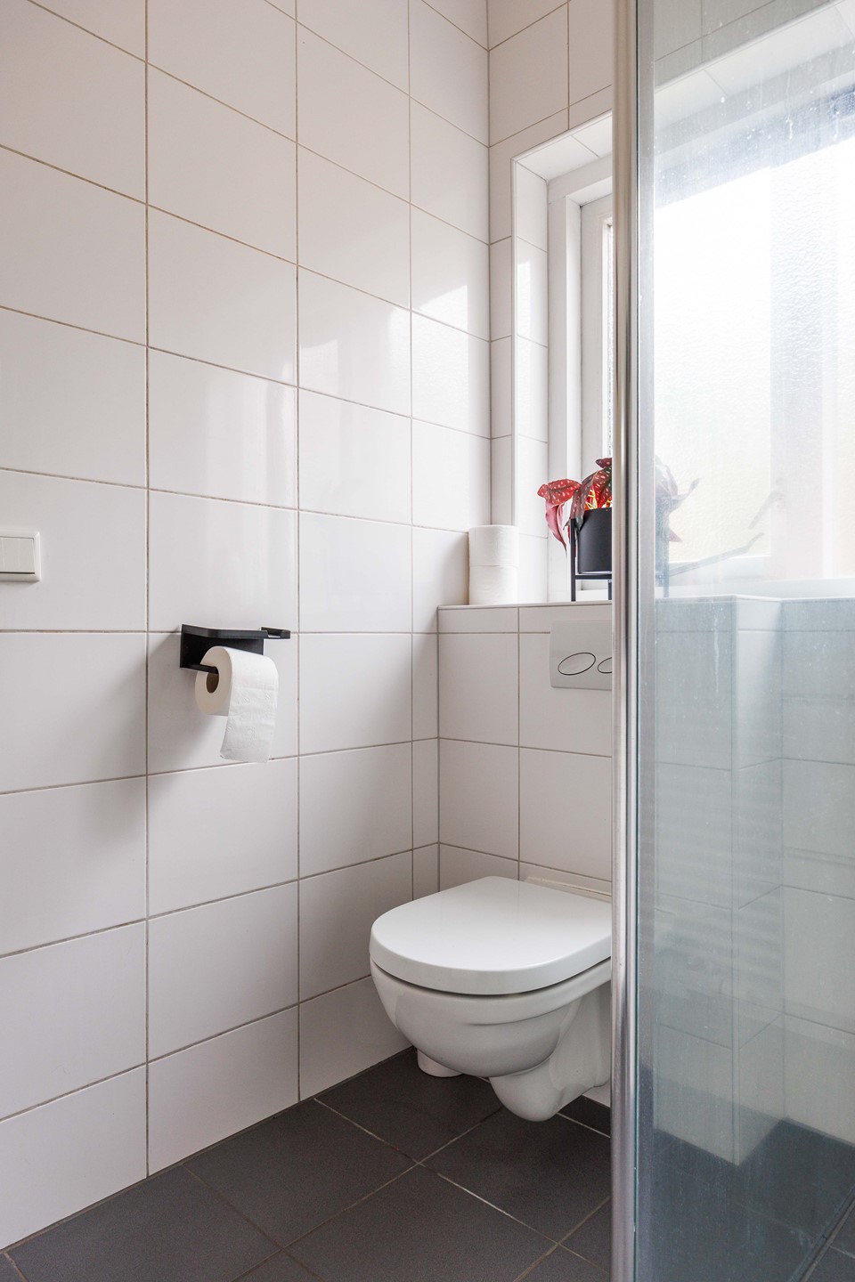 Vanuit de bijkeuken is de ruime slaapkamer op de begane grond bereikbaar. Deze slaapkamer heeft directe toegang tot de badkamer, welke is voorzien van een douche, toilet en wastafel. De indeling van deze begane grond maakt het mogelijk om volledig levensloopbestendig te wonen, zonder dat u gebruik hoeft te maken van de trap naar de eerste verdieping.