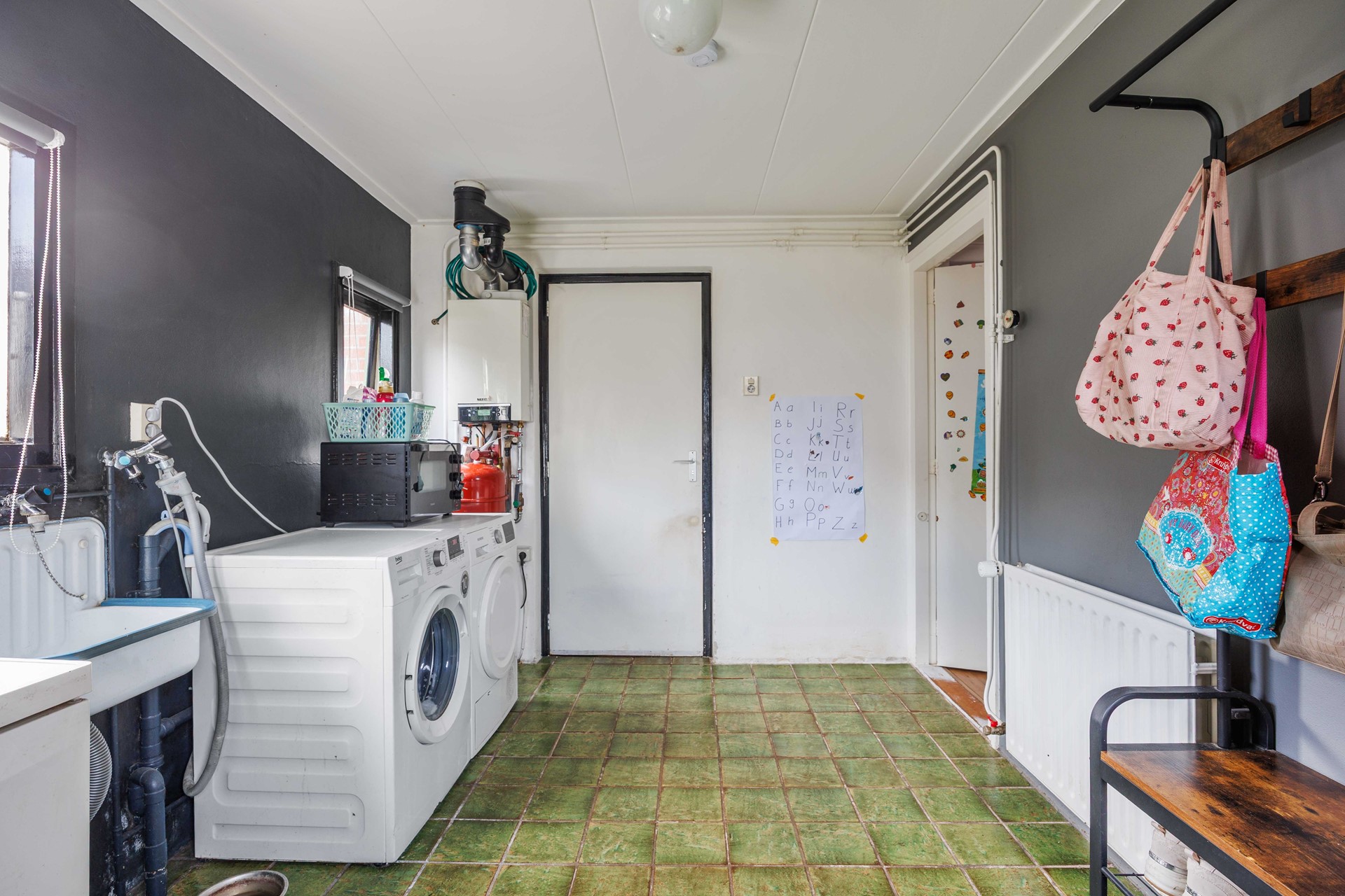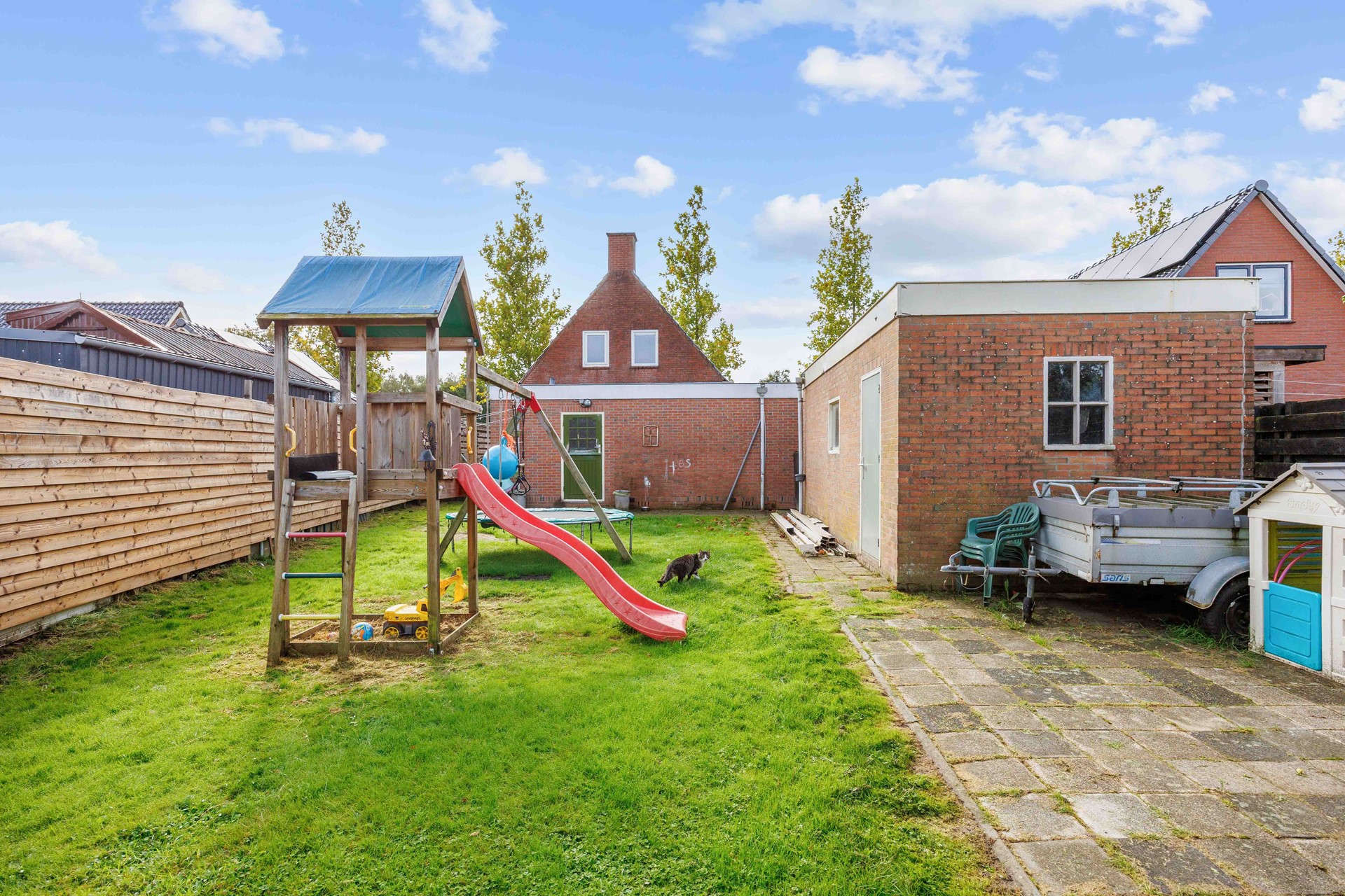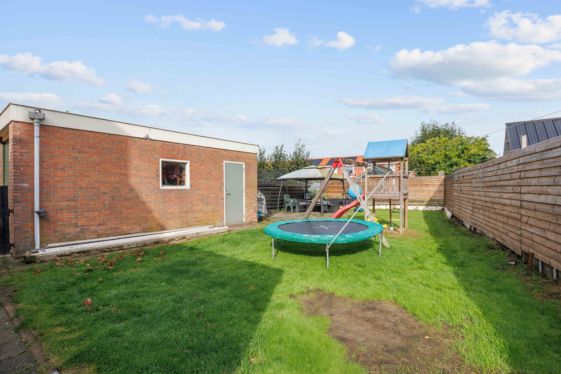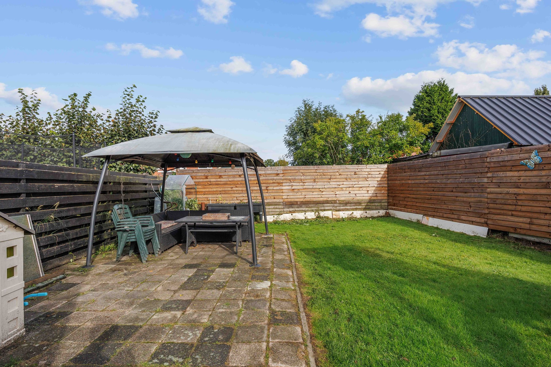 De diepe achtertuin is een pluspunt. Het is een fijne, groene ruimte met veel privacy, waar kinderen kunnen spelen, of waar u kunt genieten van de rust en het buitenzijn. De losstaande stenen garage biedt voldoende ruimte voor een auto, fietsen of opslag van gereedschap of andere spullen.