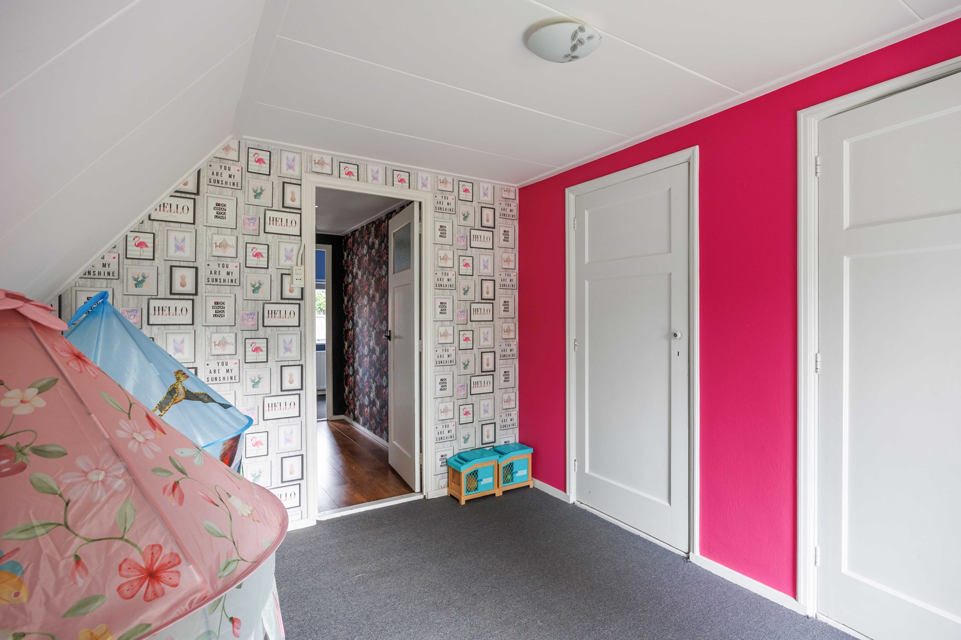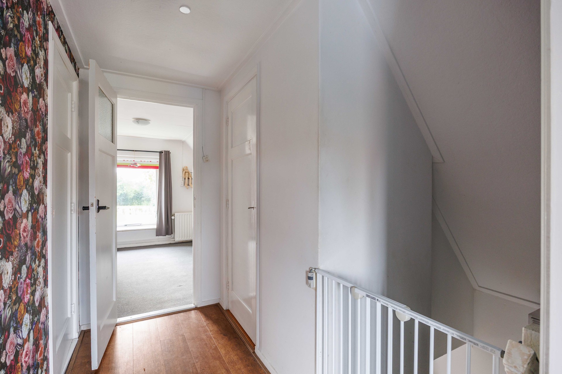 Op de eerste verdieping bevinden zich twee slaapkamers, beide met praktische ingebouwde kasten voor extra opbergruimte. De overloop op de eerste verdieping biedt ook voldoende berging, wat bijdraagt aan het ruime en praktische karakter van de woning.