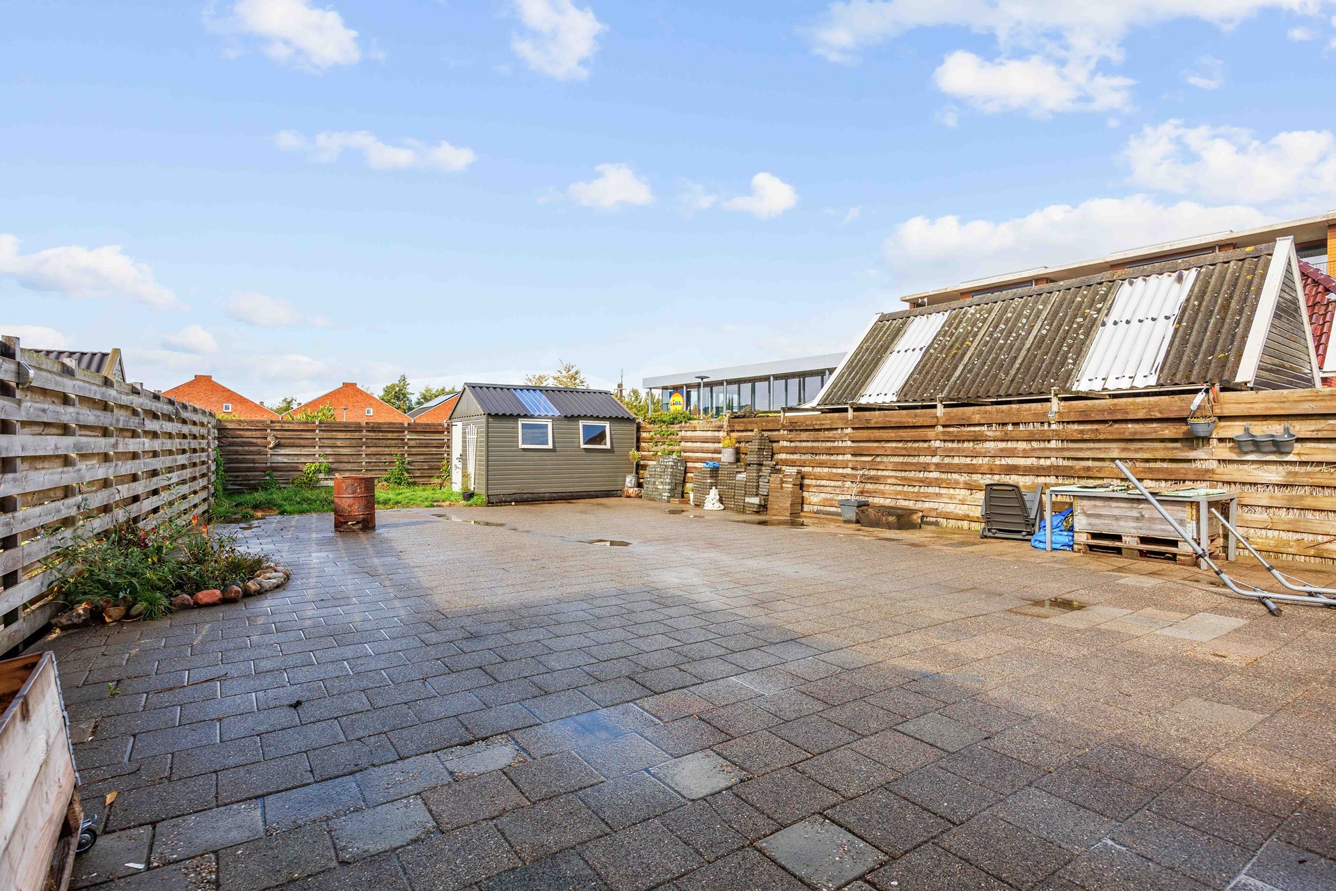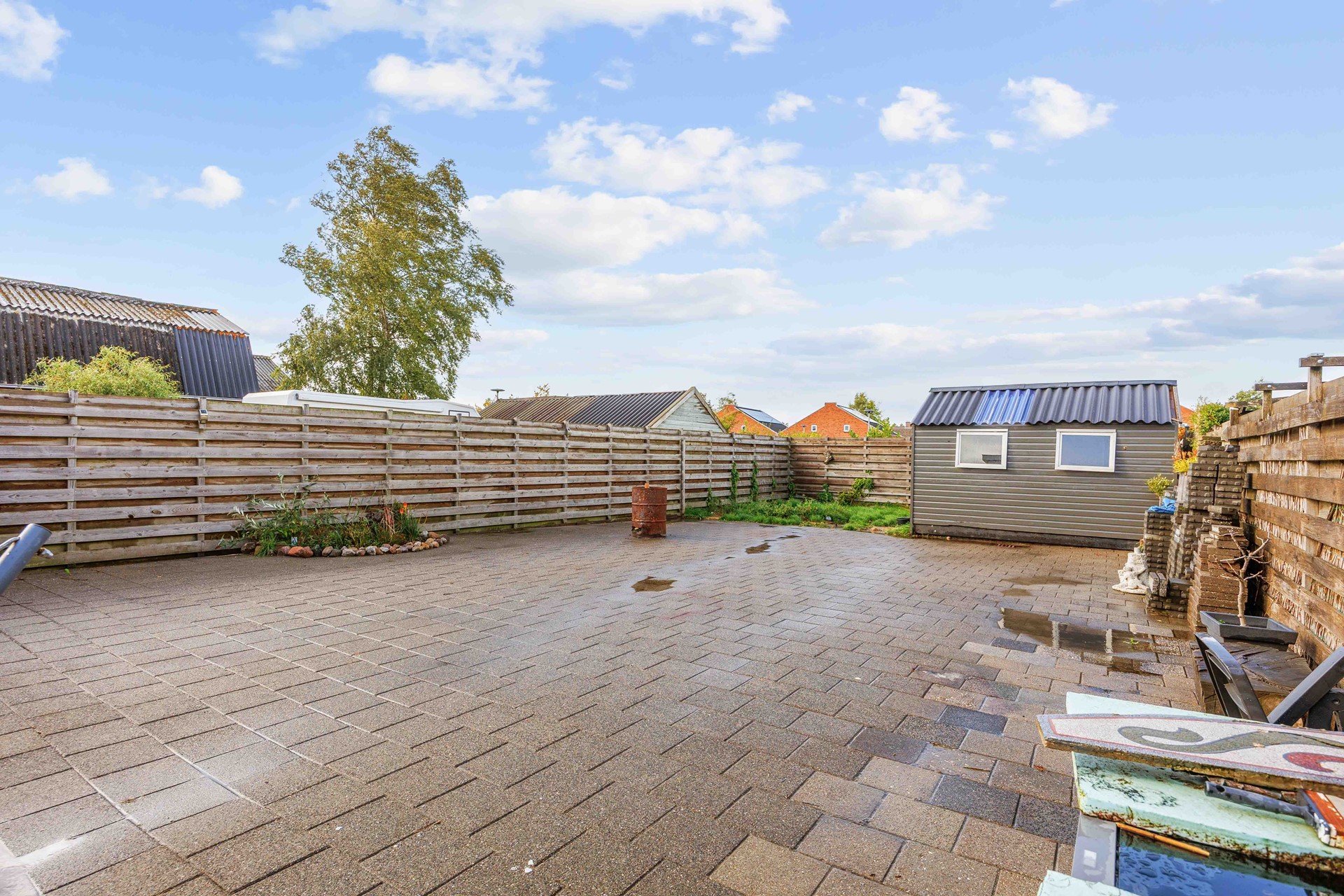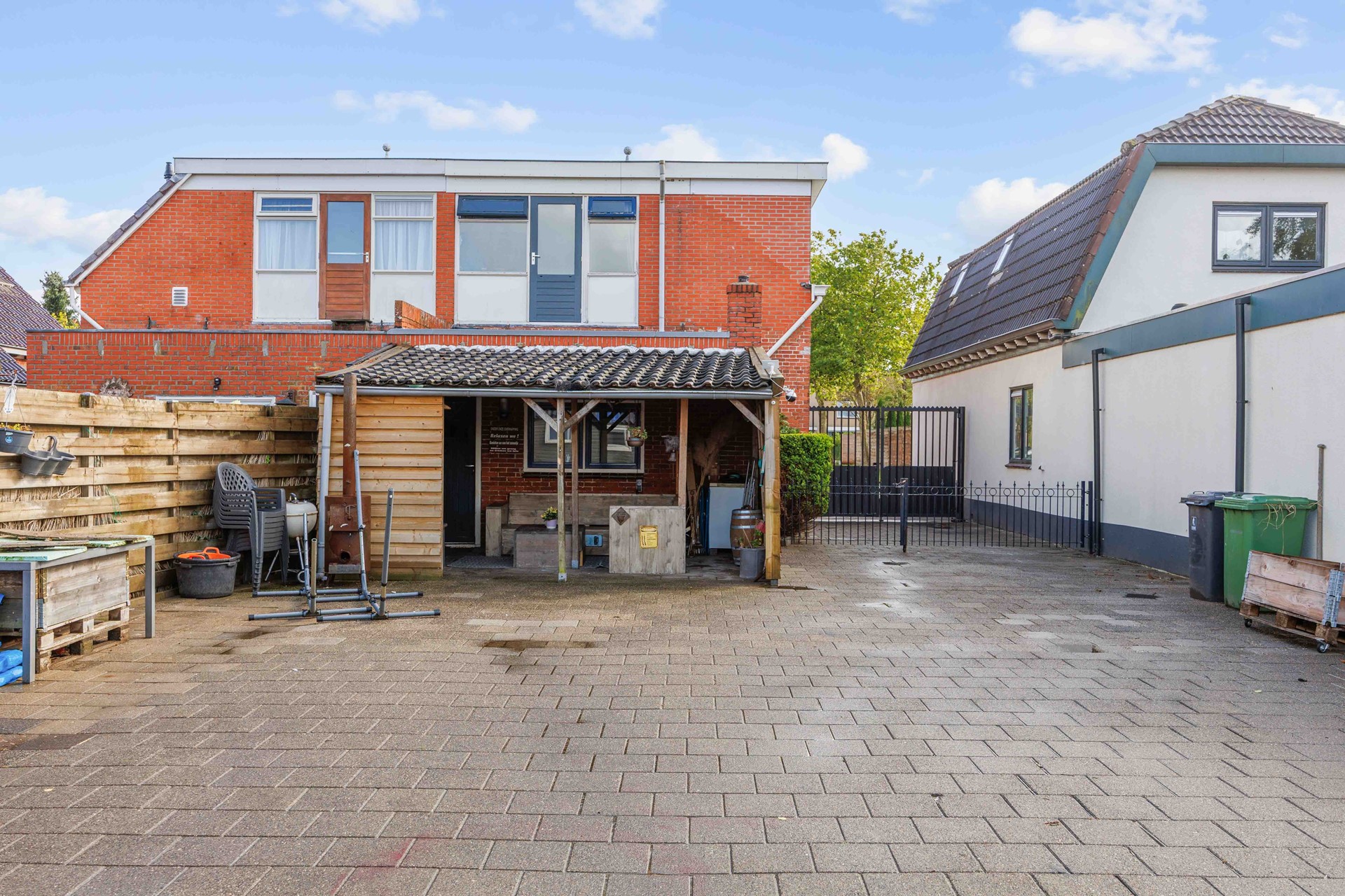 Achter de woning ligt een diepe tuin waar u volop kunt genieten van de buitenlucht. De tuin heeft niet alleen veel ruimte, maar is ook voorzien van een schuur ideaal voor tuingereedschap of het stallen van fietsen. De oprit aan de zijkant van de woning zorgt voor parkeergelegenheid op eigen terrein en doorgang naar de achtertuin.