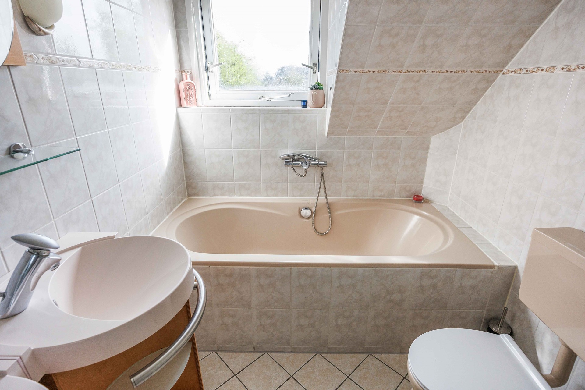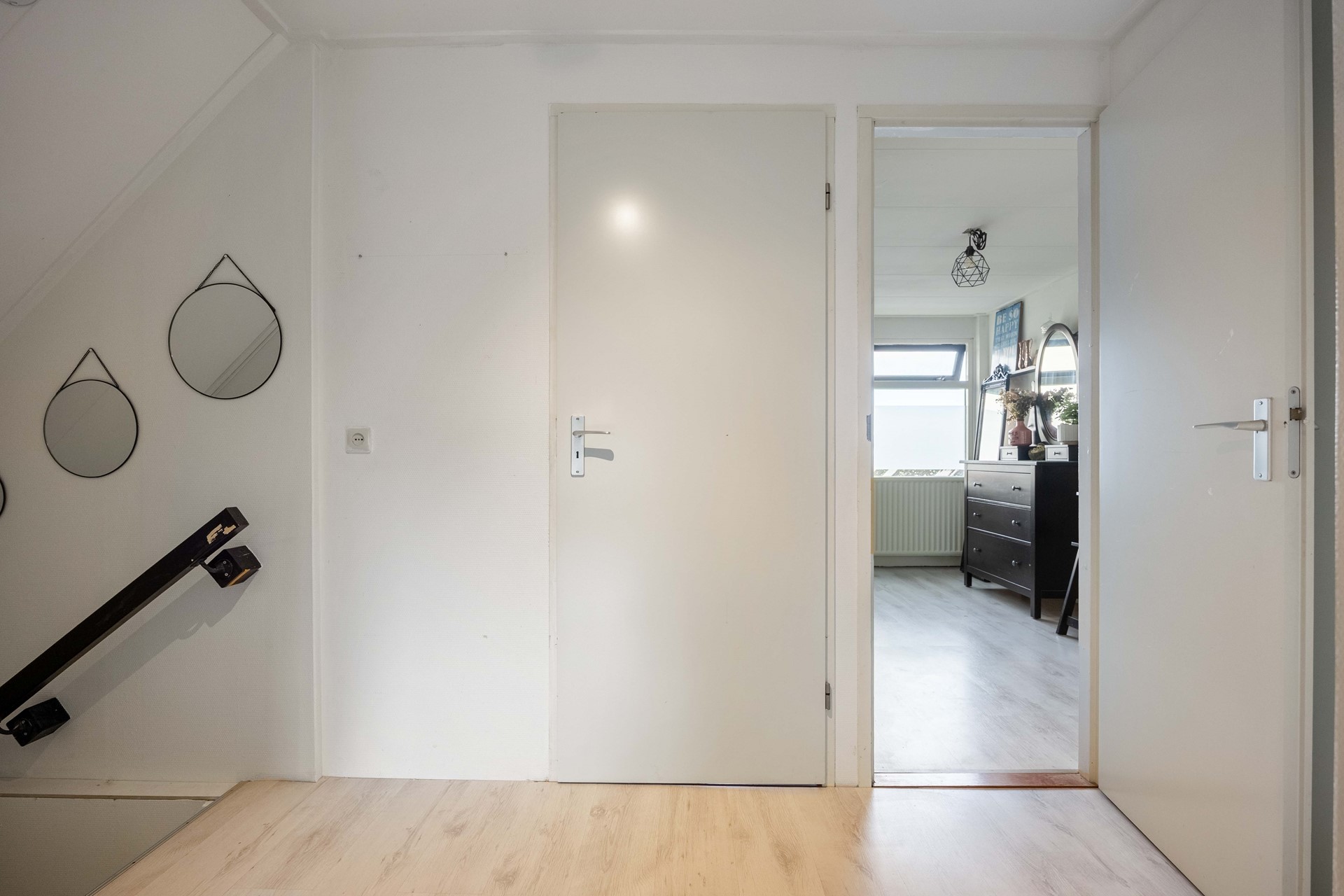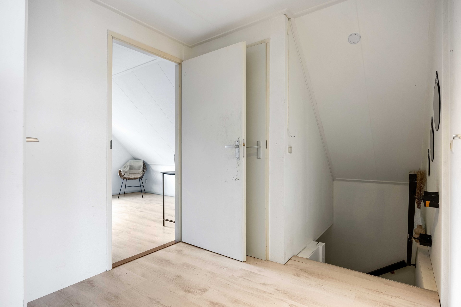 In de woonkamer is de trapopgang naar de eerste verdieping te vinden middels een kleine hal. Op de bovenverdieping bevinden zich drie slaapkamers, de badkamer en een kast voor extra opslagruimte. De badkamer is voorzien van een dubbele wastafel, ligbad, douche en toilet. Een van de slaapkamers heeft een eigen toegang tot een ruim balkon/dakterras, waar u kunt genieten van de zon of een rustige avond.